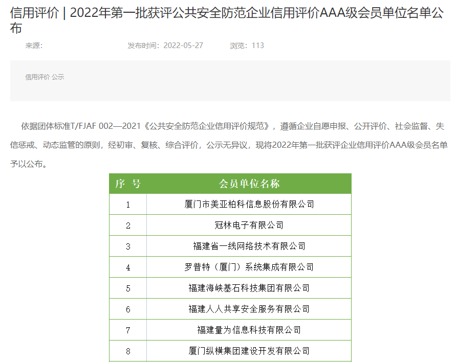 2022年9月5日,,,厦门市市场监督管理局(知识产权局)公示了2020-2021年度厦门市守合同重信用企业,,,,经过网上申报、、、、书面审查和征信等多个评选程序,,福建z6com·尊龙凯时科技有限公司凭借在合同管理、、、合同履约、、经营效益上的良好表现从众多企业中脱颖而出,,,,荣获2020-2021年度厦门市守合同重信用企业殊荣。。
